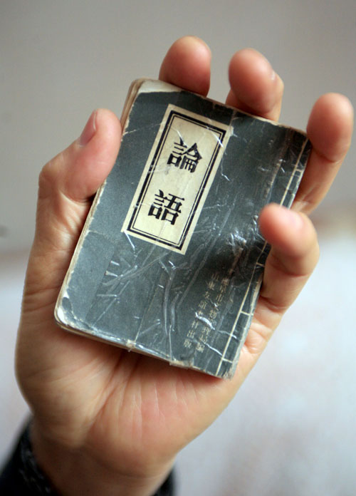 他口袋里一直裝著1990年回老家時買的袖珍的論語書,晨練看,坐車看,出去玩的時候還看。每天看完了,還有感而發(fā)在寫詩,F(xiàn)在寫了三千多首了!笨紫楦5睦习閺埵叵阏f,這兩年他操心孔子后裔聯(lián)誼分會的事情,身體不太好,所以現(xiàn)在稍微大型的活動她都去幫忙,照顧老伴。