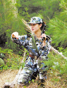 突然,宋麗娜一聲令下:“開始!”只見她和各組隊員們立即拖著彈藥箱在沙灘上匍匐前進。全副武裝的她一手拖住箱體,一手撐地,咬緊牙關,快速地在沙地上匍匐前進!氨3炙俣,姐妹們加油!”500米的距離在這項訓練中顯得非常嚴酷,女兵們宛如沙灘上的一條藍綠相間的蛟龍,矯健前行!