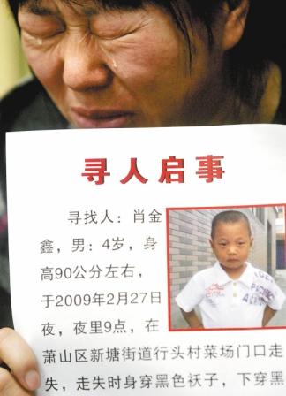 丟失的孩子名叫肖金鑫,三周歲半。
