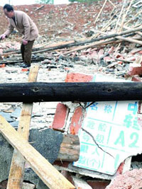 上午10時(shí)許,記者在爆炸現(xiàn)場看到,一個(gè)6平方米的火藥中轉(zhuǎn)車間已被夷為平地,瓦礫堆上散落著幾個(gè)燒焦的藥桶,附近的樹枝上掛著瓦礫碎片。所幸的是,距中轉(zhuǎn)車間20多米外的一個(gè)制造車間未受殃及,里面的工人安然無恙。