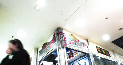 昨日中午,記者在現(xiàn)場發(fā)現(xiàn),其主要通道和許多門市的墻面上開始清晰地出現(xiàn)大小不一的裂縫!案杏X像每天都在經(jīng)歷地震!贝笃航鹣笫兰业叵律虉鯟區(qū)105號商戶趙庭明指著頭頂附近的一條裂縫說,前天上午,巨響突然傳來,一位恰巧經(jīng)過的老太以為發(fā)生地震嚇得當(dāng)即蹲倒在地。