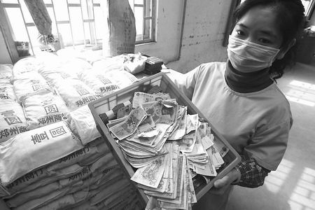 “這些全是假幣!”昨天,在鄭州市公交總公司點鈔大廳,一個個白色布袋堆放在墻角,每個布袋上都標(biāo)有“壹圓”字樣。一位趙姓工作人員說,每個布袋里都裝有2000個一元假硬幣,重10余公斤,一共288袋。記者注意到,在堆放的假硬幣上面,擺放的塑料筐里裝著面額不等的“鈔票”,“它們也都是假幣”。
