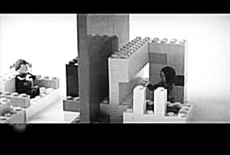 老康和姜金牙商量,決定用積木模擬出老康和女友從認(rèn)識到相愛的一些典型場景,包括醫(yī)院、地鐵站、教堂等。然后,由積木組成的小人分別“出演”男女主角。同時,將老康和女友劉偉二人經(jīng)歷的一些故事經(jīng)過藝術(shù)加工,編成一幕幕短劇。