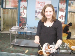“我先來,是這里的地主!避噭P茜說,開餃子店幾年來,她學會了怎樣與菜市場的小商小販討價還價,學會了怎樣招徠顧客。其他老外初入洋人街開店,她主動幫忙,給他們當翻譯等。為給新來的老外“扎場子”,她還經(jīng)常組織朋友去照顧生意。