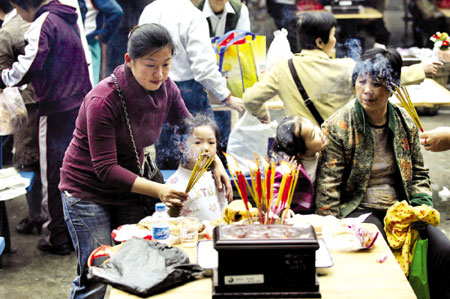 與乳豬的遇冷相比,鮮花今年大受歡迎,祭祖的市民幾乎人手一份,供在先人骨灰案前。但是,部分市民卻“中西結(jié)合”,一手鮮花,一手紙錢。由于火葬場(chǎng)內(nèi)禁止燒紙錢,有人竟做起了生意,“代燒紙錢,一次10元”,他們或者提供鐵桶供燒紙錢,或者幫忙把紙錢拿到偏僻處焚燒。有市民趁工作人員不注意,偷偷焚燒起紙錢,紙灰滿天飛。(陳曉璇、王世宇)