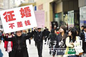 “征婚,不差錢”。昨日下午,在南京新街口正洪街廣場,一名青年女子高舉寫著這五個大字的廣告牌,從逛街的人流中走過,雷人的廣告詞引來眾多市民圍觀。緊跟在后面一名中年男子舉著另一塊廣告海報,密密麻麻的文字揭示了其中的玄機(jī)。原來,中年男子是南京一家婚介公司的負(fù)責(zé)人,此舉是為北方某地一千萬富翁征婚。記者通過QQ聯(lián)系采訪了這名富翁,得知這位北方漢子竟對南京女孩情有獨(dú)鐘,執(zhí)意要在南京找到另一半。