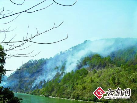 記者看到,江對(duì)面的兩面山崖,一面山崖的植被已經(jīng)徹底燒毀,一片焦黑,僅有余煙;另一面山崖濃煙正起,不時(shí)可見(jiàn)明火。村民說(shuō),這些天天氣干燥,再不撲救,就怕難控制了。村民告訴記者,前面不遠(yuǎn)就是林區(qū)派出所。