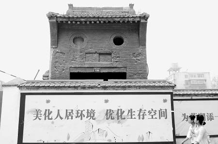 工地一位負(fù)責(zé)人講,考慮到這座門(mén)牌樓已經(jīng)有上百年的歷史,就沒(méi)有隨著城中村改造整體拆除,暫時(shí)保護(hù)起來(lái)。“‘囧’?我還沒(méi)發(fā)現(xiàn),難怪有很多人來(lái)這里轉(zhuǎn)悠。”他說(shuō),最近很多年輕人來(lái)看這座門(mén)牌樓,還有好多人拿著相機(jī)拍照。(文/圖 記者 李卓洋)