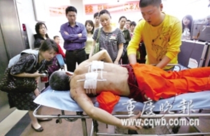 昨日下午5點,環(huán)衛(wèi)工魏泉茂被送到市急救中心搶救。他背部雙側(cè)被砍傷,最深處為5厘米,肩胛骨被砍斷,幸無生命危險。據(jù)魏泉茂說,當(dāng)時他在凱旋路附近做清潔,一輛灰色轎車欲停在他正在清理垃圾的地方。魏泉茂表示,等清掃干凈了再讓開。雙方爭吵起來。隨后,魏泉茂推著垃圾車來到了儲奇門垃圾站對面。一名男子突然持刀沖向他,一來就是兩刀。隨后,男子招下一輛出租車逃跑。魏泉茂說,砍他的人就是與自己爭吵的那名司機(jī)。目前,儲奇門派出所正在調(diào)查此案。(朱雋 龍珊)