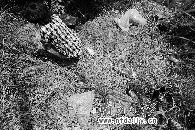 昨日下午,蔣某雨等4人帶記者來到事發(fā)地點。記者發(fā)現(xiàn),此處距最近的工廠約700多米,馬路上車來車往,但很少有行人經(jīng)過。馬路邊坡下的草叢約一米多高,從坡上很難發(fā)現(xiàn)藏在草叢中的人。幾只鞋和一條皮帶散落在草叢中,蔣某雨說,還有些鞋和褲子被警察拿走了。
