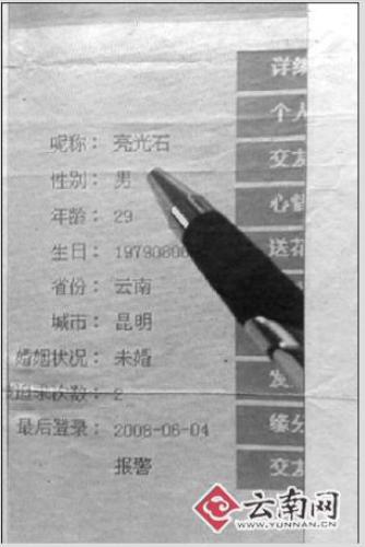 去年3月,網(wǎng)名為“迷惑夢中人”的小麗(化名)閑著無事,便上云南信息港的交友網(wǎng)上玩耍,當(dāng)看見網(wǎng)名叫“亮光石”的征婚廣告:“29歲,無不良嗜好,采礦業(yè)執(zhí)行官,月收入兩萬元。誠征20至28歲的單身女孩為終身伴侶,學(xué)歷高中即可”時(shí),小麗記下了他的聯(lián)系方式,雙方還互相留下QQ號碼。