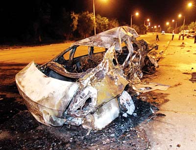 事故發(fā)生后,記者接報趕到現(xiàn)場發(fā)現(xiàn),被撞后嚴(yán)重扭曲變形的“天籟”小轎車,已燒剩一副骨架,車尾部仍在不停地冒煙,現(xiàn)場彌漫著一股刺鼻的焦臭味;而離該車尾部左邊約七八米外的雙黃線旁,橫臥著一具身穿紅色上衣的男子尸體;該車內(nèi)右側(cè)座位上也有一具已被燒焦的尸體。