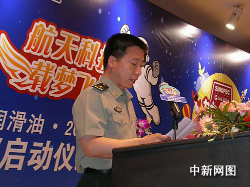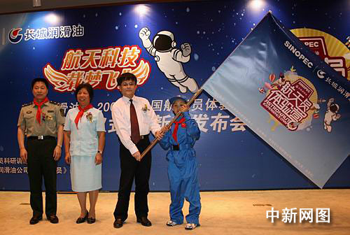 中新網(wǎng)成都5月21日電(記者楊杰)21日下午,航天英雄、中國(guó)航天員科研訓(xùn)練中心副主任楊利偉將軍等嘉賓在成都向來自“5•12地震”震中映秀的李俊鵬同學(xué)授航天員體驗(yàn)營(yíng)營(yíng)旗,拉開了“長(zhǎng)城潤(rùn)滑油• 2009年中國(guó)航天員體驗(yàn)營(yíng)”四川招募活動(dòng)大幕。這是“中國(guó)航天員體驗(yàn)營(yíng)”首次在四川地區(qū)公開選拔營(yíng)員,10名幸運(yùn)者將在暑期當(dāng)一回實(shí)實(shí)在在的“太空人”。