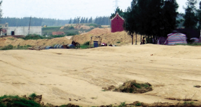 霞坡大村一康姓村民說(shuō),早在2006年原村民小組長(zhǎng)在任時(shí),曾有外地人提出在該村邊采礦,遭到村民的反對(duì),只采了幾天就停工了。去年,新一屆村干部上任后,有的村干部同意將地租給他人采礦。從今年3月底開(kāi)始,一些不法人員進(jìn)入該村離大海約1.5公里處的村邊林地,砍毀了大片茂盛的速生林,架起采礦機(jī)械,搭起簡(jiǎn)易工棚,大肆抽取沙土里面含有鈦等金屬的黑、黃色礦砂。自此以后,原先保護(hù)良好的生態(tài)環(huán)境遭受到了嚴(yán)重破壞,大片的沙灘地被挖塌了,村邊林地被挖成大深潭,對(duì)孩子們的安全構(gòu)成了很大的威脅。