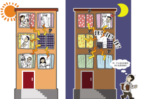 “誰叫他們不讓我有好覺睡!4—3的住戶名叫陳強(化名)稱,兩個多月前,他被調(diào)派上夜班,每晚10點上班,第二天清晨才下班回家。回家后,陳強拖著疲憊的身軀剛一躺下,就聽到一些住戶家傳來的電視聲、廣播聲、唱歌聲、小孩的哭聲,這一切吵得陳強無法安睡,幾乎要在床上折騰幾個小時后,陳強才能勉強入睡。