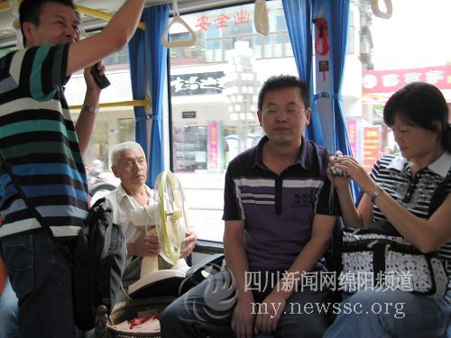 下午4點過,記者重新上了一輛空調公交,并且故意把隨身帶的鐵錘裸露在外,剛站穩(wěn),身邊一對年輕情侶一眼就看到了記者包中的錘子,覺得非常好奇,問記者是不是帶錘防身。記者故意說是砸玻璃用的,這對情侶一下就笑了,并笑中夾帶語言:“這里是綿陽,不是成都,聽說只有成都上公交才帶錘子”,并覺得記者在綿陽坐帶鐵錘有點小題大做;旁邊一位男乘客還友善地給記者建議,希望把錘子把柄鋸短一點,以方便放于包內(nèi);身后一位女乘客還拿出相機拍照,記者問其為何照相,女乘客告訴記者,在成都帶錘子看到過,在綿陽還是第一次看到帶鐵錘乘公交,覺得很新鮮,還說要發(fā)到網(wǎng)上的論壇去。