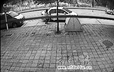 監(jiān)控錄像顯示,昨日上午10時22分20秒,一輛白色廣本飛度緩緩停在東城街道東平街旭陽冷氣店外的馬路上。一名身高1.75米左右、身穿休閑衣服、腳著運動鞋的男子,從副駕駛室下來,不動聲色地走進旭陽冷氣店。監(jiān)控錄像還顯示,廣本汽車里人頭晃動,車內至少有4名同伴。