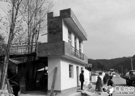 發(fā)帖者稱,“在河南省欒川縣叫河鄉(xiāng),一個(gè)建筑格外顯眼,就在公路旁邊,猛一看是兩層小樓,墻壁還刷得白白的,孰不知這棟樓深度只有1.5米左右,為了配合‘新農(nóng)村建設(shè)’建新房,可農(nóng)民又沒錢蓋‘真樓房’,就只有這樣做了!