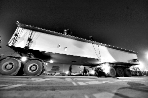 據(jù)悉,昨晚11時(shí)許,首片鋼箱梁裝車后,在巡邏警車的護(hù)送下,經(jīng)京石高速、豐北橋、西四環(huán)、南四環(huán)、大紅門橋等,耗時(shí)約1個(gè)半小時(shí)到達(dá)目的地。