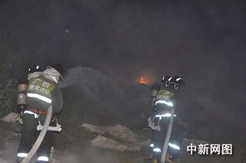 中新網(wǎng)來賓8月10日電 (陳小勇 王剛) 8月10凌晨1時(shí)30分許,廣西來賓市興賓區(qū)物資總公司炸藥庫附近,一堆不明物體突然發(fā)生燃燒并產(chǎn)生大量煙霧,火勢(shì)逐漸向四周蔓延,嚴(yán)重危及到倉庫內(nèi)存放的10噸炸藥。