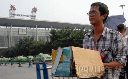 今年20歲的顧明軍來自涼山州會理縣一個小村莊,來成都半年,做電工的他沒有找到合適工作,就在一個小餐館打工。幾天前,家中來電話讓他回家。昨天早上9點半,顧明軍就到了火車北站,準備買下午1點回老家的車票。買了票,顧明軍看見廣場上圍著一群人!暗降子猩蹲雍每吹?”顧明軍撥開人群,發(fā)現(xiàn)樹下躺著一個紙箱子,箱里有個盒子,上面有塊紅布。“啥子東西哦?”“骨灰盒,不曉得哪個掉了的!”“看到就晦氣,哪個愿意動它!迸赃呉晃荒弥鴴咧愕拇蠼阏f,8日晚上就有人發(fā)現(xiàn)這個骨灰盒躺在樹下,沒人敢動!肮腔液?”顧明軍發(fā)現(xiàn)盒子已經(jīng)被人拆開,周圍粘滿了泥土!疤炷趿,去世后竟然這樣悲慘。”顧明軍走上前去,撿起骨灰盒小心翼翼地放進紙箱,并蓋好了蓋子,“人死了,骨灰不能被風吹掉!鳖櫭鬈婇_始查看骨灰盒,試圖找到聯(lián)系方式,但除了外包裝上有“歐式別居”4個手寫的字外,沒有任何線索。