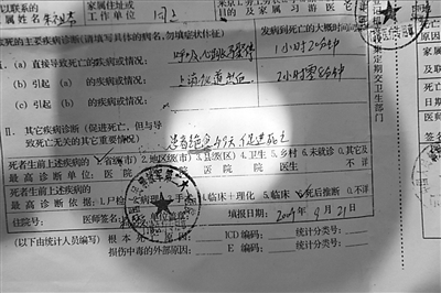 在261醫(yī)院的記錄單上寫著,患者于3點55分入院,跟隨人員向搶救人員訴說,40分鐘前,患者因上消化道大出血,導致呼吸、心跳驟停,經(jīng)過心肺復蘇等救治后恢復心跳和呼吸。雖然搶救人員全力救治,祁長江在凌晨4點半左右被宣布死亡。
