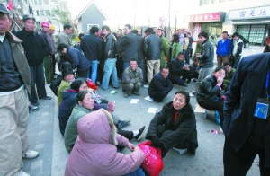 昨天中午,為討薪,圍堵(北京市)大興區(qū)世嘉博苑小區(qū)大門已兩天的300余名建筑工人,開始向小區(qū)內(nèi)投擲磚頭,并欲強(qiáng)行沖入小區(qū)。開發(fā)商雇用的保安也動(dòng)用水槍向工人們噴射。