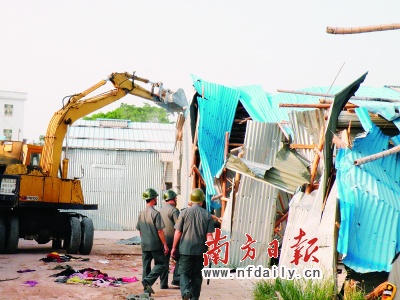 昨日,在繼近兩年來近百次的打擊走私舊服裝的行動(dòng)后,陸豐市出動(dòng)800多公安、工商、城管等警力、人力,對(duì)位于碣石鎮(zhèn)新繞村的“洋垃圾”窩藏點(diǎn)的288間鐵皮房進(jìn)行定點(diǎn)清除。
