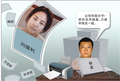 今年6月,閆德利提出分手。楊某不同意,對(duì)其百般糾纏,但遭到了閆德利的拒絕。8月初,楊某從中關(guān)村專門購買了筆記本電腦、上網(wǎng)卡、打印機(jī)、塑封機(jī)等設(shè)備,接下來便是打印散發(fā)與閆德利同居時(shí)的私密照,開博捏造事實(shí),公布“嫖客”電話號(hào)碼……成為掀起軒然大波的“艾滋女”事件的始作俑者。
