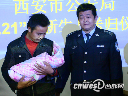 備受公眾關(guān)注的西安交大一附院丟失女?huà)虢裉旖K于回到了父親嚴(yán)小紅的懷抱。今天(12月2日)下午西安市公安局專門(mén)舉行送歸儀式將女?huà)虢唤o他的父親嚴(yán)小紅,西安市公安局通過(guò)DNA鑒定,確定女?huà)霝閲?yán)小紅和張?zhí)m芳的親生女兒。