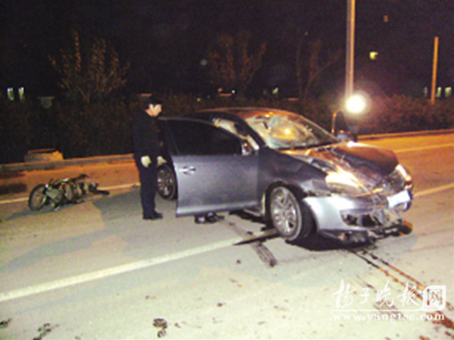 昨天凌晨,一輛大眾速騰轎車行駛到南京揚(yáng)子江大道定淮門(mén)大街路口附近,突然將一名騎助力車的保安撞飛幾十米外,保安不治身亡,助力車被卡住拖行,轎車滑行幾十米后才停下,而開(kāi)車男子自稱當(dāng)時(shí)時(shí)速為70公里左右。事發(fā)后,目擊者稱肇事司機(jī)兩次在路邊嘔吐,且聞到一股酒味,面對(duì)眾人詢問(wèn),肇事司機(jī)否認(rèn)喝酒。然而昨天下午,記者獲悉,男子因交通肇事被刑事拘留,此外還涉嫌酒后駕駛。