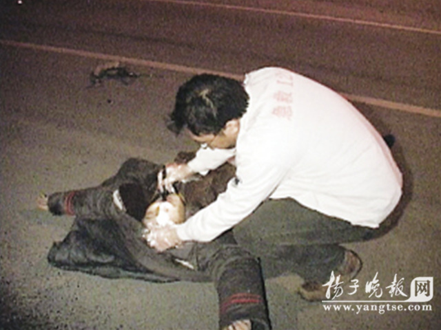 昨天凌晨0點(diǎn)35分,一輛由南向北行駛在南京揚(yáng)子江大道上的銀灰色速騰轎車,在開(kāi)到定淮門(mén)大街的路口時(shí),突然將一名騎助力車身著保安制服的男子撞飛40多米外的車道上。頓時(shí)被撞保安不省人事。事情發(fā)生后,110民警接到報(bào)警立即通知了120救護(hù)車及交警五大隊(duì)到場(chǎng)處理。很快,民警臨時(shí)用路障將現(xiàn)場(chǎng)進(jìn)行保護(hù),此時(shí),那名穿著保安制服的中年男子仰面倒在地上,這名保安是南京鼓樓區(qū)保安公司的保安萬(wàn)德華。醫(yī)護(hù)人員將他抬上車就近送往南京醫(yī)科大學(xué)第二附屬醫(yī)院搶救。