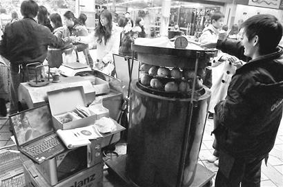 這家攤點(diǎn)的負(fù)責(zé)人李先生說(shuō),他們的烤薯攤點(diǎn)是連鎖店,“這種連鎖攤點(diǎn)在成都有10多個(gè),還有至少5家連鎖店面。在北京、上海、綿陽(yáng)等地還有分店!彼f(shuō),連鎖店老板是個(gè)臺(tái)灣人,使用的是從臺(tái)灣引進(jìn)的烤薯方法,比成都市場(chǎng)上的烤薯技術(shù)都要先進(jìn)。李先生拉開(kāi)烤薯箱,里面擺有幾十個(gè)紅薯,還有個(gè)圓形的溫度計(jì)!斑@是專門在臺(tái)灣訂制的!