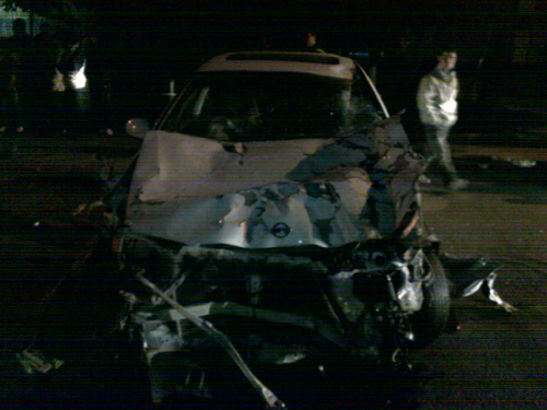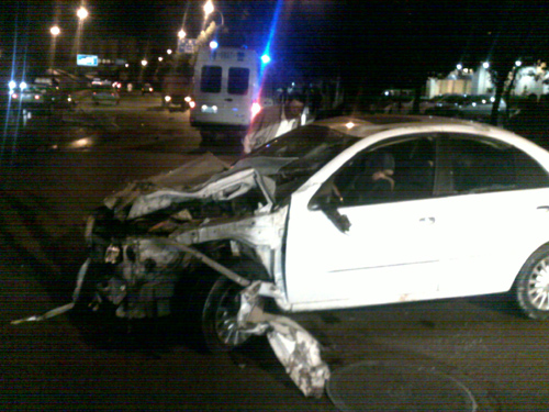記者在現(xiàn)場看到,二層橋面快到坡底的隔離欄已經(jīng)完全撞破,開出一個大約25米的缺口,而白色轎車則停在離隔離欄缺口約50米遠的地方,車頭等部位受損嚴重幾乎接近報廢。轎車駕駛員癱坐在人行道邊,有輕微的受傷,身披一件警用大衣,但不見肩章和警號,身上散發(fā)著濃烈的酒氣,對于民警的詢問幾乎無法正常作答。