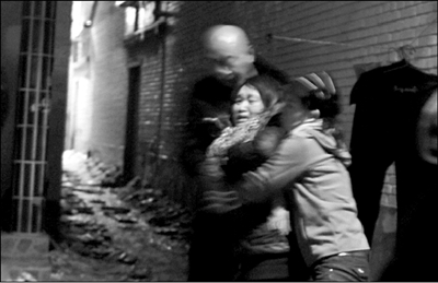 “房子都著了,火苗燒化了窗戶,火舌呼呼往外吐!眲(guó)富很害怕,他從來沒有見過這么大的火,房子吱吱嘎嘎響,隨時(shí)都有坍塌的危險(xiǎn)。一個(gè)老頭和一個(gè)穿紅衣服的女子正把幾個(gè)孩子往門口送,他沒有猶豫便沖進(jìn)去了,煙熏得他直流淚。他看到房子門口有3個(gè)哇哇大哭的孩子,其中一個(gè)還坐在地上哭,他用大手一攬就往外跑。