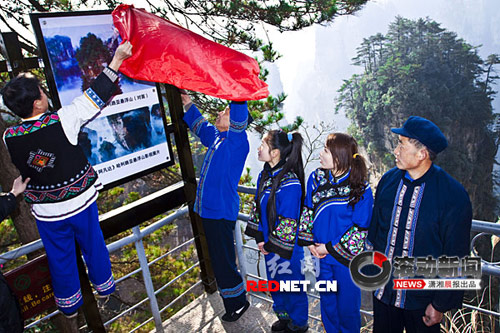 帖子描述稱,1月25日上午,張家界數(shù)名身著土家族服裝的原住居民為“南天一柱”(又名“乾坤柱”)更名標(biāo)識(shí)牌舉行了揭牌儀式。