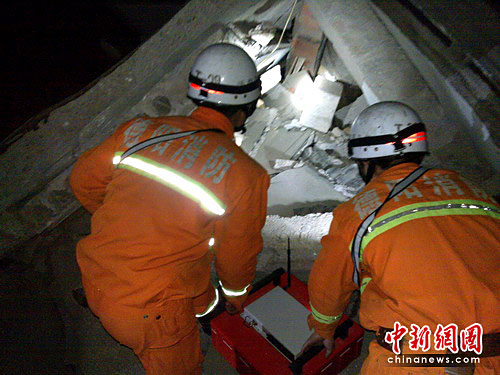 “有人、有人,快挖!”他們立即放下探測裝備展開營救,周圍的消防官兵也聞迅投入到營救中,他們先用鐵鏟將被埋人員上方的磚塊、混凝土等鏟除,利用液壓擴張器、金屬切割器等專業(yè)救援裝備,將斷裂的樓板等進行分開、支撐、掀起,努力開辟營救通道。為避免鐵器傷及被埋人員,救援人員徒手將石塊、鋼筋和建筑殘渣進行清理,一層一層向下挖,很快一支手臂出現(xiàn)在官兵們眼前,他們加快速度,不到5分鐘,這名婦女被救出了廢墟,遺憾的是,這名婦女由于傷勢過重早已勛命。肖國平楞住了,他滿懷心切,以為能救出生命,他的心沉甸甸的。按照當?shù)亓曀,死者?yīng)該由僧人來挖,且要現(xiàn)場念經(jīng)超度。他們收拾起沉重的心情立即投入到搜索被困人員中。