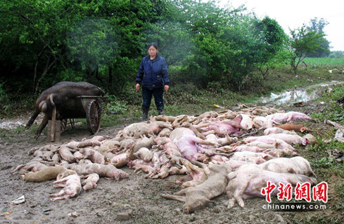 翁源縣官渡養(yǎng)豬場(chǎng)老板林德富告訴記者,6日晚11時(shí)左右,暴雨使得水勢(shì)迅速在整個(gè)養(yǎng)豬場(chǎng)蔓延,造成損失至少1200多頭豬。面對(duì)被洪水沖得一片狼藉的養(yǎng)豬場(chǎng),這個(gè)56歲的漢子忍不住蹲在地上掩面而泣。
