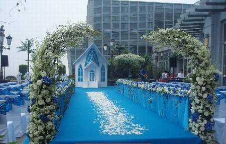 16午12時(shí),在某大酒店,一個(gè)微縮版的水晶教堂,擺上了婚禮舞臺(tái);槎Y承辦方負(fù)責(zé)人馬先生說(shuō),婚禮的布景,花了20多萬(wàn)元。