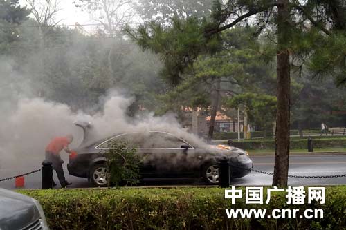 今天下午5點(diǎn)20分左右,一輛掛有北京牌照的奧迪小轎車(chē)在三里河主路上起火燃燒,記者初步斷定為車(chē)輛自燃。在現(xiàn)場(chǎng)記者還看到發(fā)動(dòng)機(jī)引擎蓋內(nèi)不斷有火苗和濃煙冒出,交警正在維護(hù)交通秩序和向旁邊的車(chē)輛借助滅火器。車(chē)輛大概燃燒了15分鐘,隨后消防車(chē)輛趕到徹底將余火撲面。截止記者發(fā)稿時(shí),現(xiàn)場(chǎng)未出現(xiàn)人員傷亡。(記者李志勇)