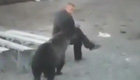 【解說】7月25日,重慶的室外溫度將近40℃,原本一動不動地趴在角落里減少體力消耗的棕熊被挑逗起來,原來,飼養(yǎng)員準(zhǔn)備的“冰點(diǎn)”來了,美味的冰凍西瓜成為了棕熊避暑小點(diǎn)心。