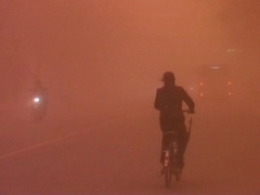 2011年4月29日,河西五市及白銀、蘭州等市出現(xiàn)沙塵天氣,蘭州市民上街掩面而行。蘭州中心氣象臺于07時15分發(fā)布沙塵暴橙色預(yù)警信號,預(yù)計(jì)12小時內(nèi),上述地區(qū)沙塵暴仍將持續(xù),局部地方有強(qiáng)沙塵暴。 (記者 韓璐 通訊員 楊棟春 蘭州酒泉報(bào)道)