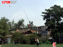 山西老人10米魚(yú)竿抖空竹 欲刷新世界紀(jì)錄