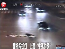 實(shí)拍:摩托闖紅燈 上演“生死時速”
