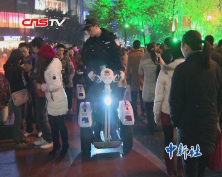 【解說詞】執(zhí)勤民警告訴記者,警方還在商業(yè)核心區(qū)設(shè)立了臨時指揮中心,公安、武警、消防等多個部門聯(lián)動徹夜巡邏,以預(yù)防并及時處理市民“狂歡”可能導致的安全隱患。