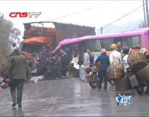 實(shí)拍江西一公交車與大貨車猛相撞現(xiàn)場(chǎng)