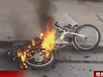 美女騎電動(dòng)車(chē) 電池爆炸如子彈齊射