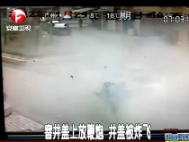 實(shí)拍:窨井蓋上放鞭炮 人和井蓋一起炸飛