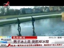 危險瞬間:男子冰上玩耍突然掉進冰窟