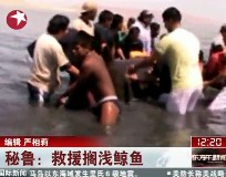 秘魯鯨魚擱淺 眾人齊心協(xié)力成功援救
